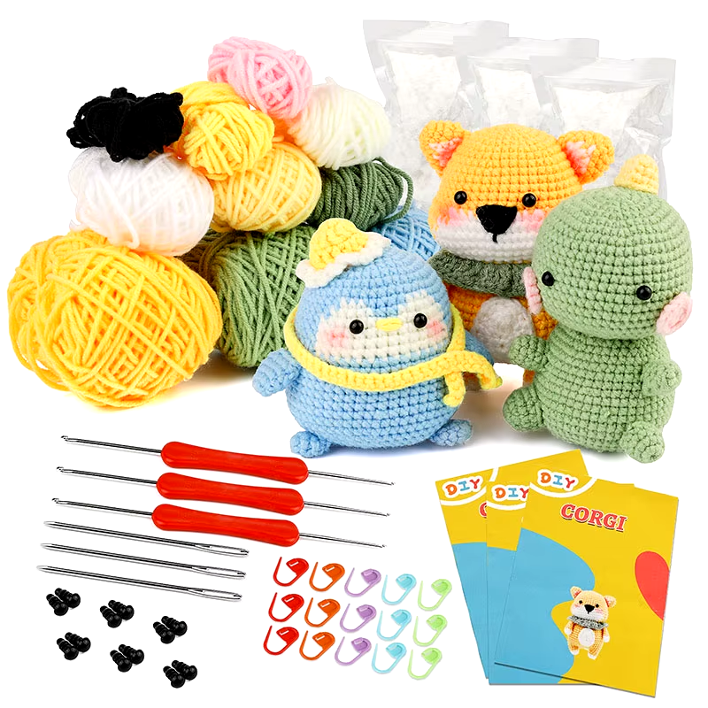 KRABALL DIY Crochet Animal Kit With Hand Knitting Yarn Needles Plush Doll Easy for Starter Includes Enough Yarn Hook Accessories
